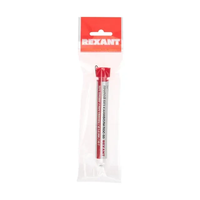 Припой без канифоли ПОС-30, 10г, ?1мм, (олово 30%, свинец 70%), колба REXANT