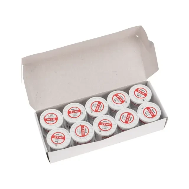 Припой ПОМ-3 представляет собой композицию из 97% олова и 3% меди (Sn97Cu3). Из-за специфики применения в большей степени используется в условиях профессиональной пайки. Распространен в механизированной и автоматизированной пайке благодаря малой токсичности и удобству применения. Предназначен для пайки трубопроводных соединений из меди или ее сплавов. Используется для лужения медных деталей в пищевой промышленности, а также соединения металлокерамических деталей и узлов, содержащих медь и олово, соединения фитингов и трубопроводов в химической промышленности. Припой отличается повышенной прочностью при затвердевании и хорошей смачиваемостью в процессе пайки. Вариант фасовки – катушка с проволокой диаметром 2 мм. Оптимальный температурный диапазон пайки составляет +230…+250°С. Изготовлен в соответствии с требованиями ГОСТ 21931-76. Является прямым аналогом немецкого припоя Sanha 4933.