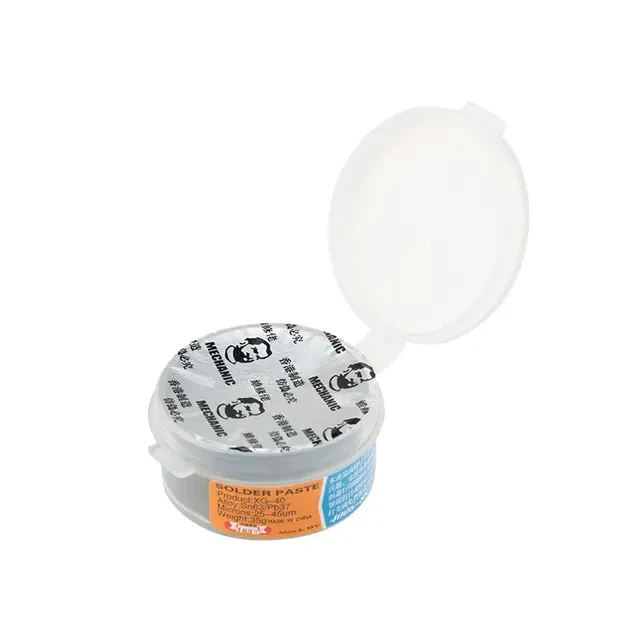 Припой — паста (паяльная паста) — это техническая (вязкая, густая) смесь порошкообразного припоя и флюса-связки, а также других вспомогательных веществ, которые делают свойства пасты более активными и интенсивными. Паяльные пасты широко используются в электронной промышленности в технологии поверхностного монтажа SMD компонентов. Служит материалом, обеспечивающим образование паяльных соединений. Способ применения: Нанести на место пайки. Произвести пайку. При необходимости удалить остатки. Основные достоинства: Многофункциональность применения — помимо основного назначения в качестве припоя, паста одновременно является флюсом. Возможность применения пасты для изготовления плат с очень мелкими деталями. Механизация паяльных работ. Технические характеристики: Температура пайки: 180...350 °C Содержание олова: 63 % Тип флюса: канифольный активный Отмывка: горячая вода Масса: 35 г