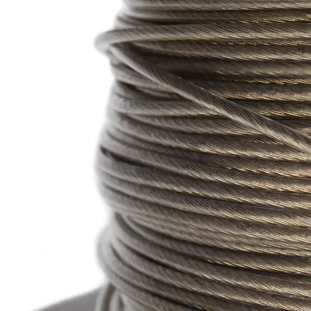 Стальной трос с полимерным покрытием используется для монтажа рекламных растяжек, систем освещения, новогодних конструкций и украшений. Применяется при организации ограждений, а также при оборудовании парников и теплиц. Предназначен для использования при статических нагрузках. Стальной трос свивается из высокоуглеродистой латунированной стальной проволоки и покрывается ПВХ, что обеспечивает устойчивость к воздействию влаги и пресной воды. ПВХ покрытие является экологически чистым и абсолютно безопасным материалом для человека и животных. Срок службы троса составляет более 25 лет (при отсутствии механических повреждений покрытия). При установке троса используют вспомогательные такелажные приспособления, талрепы, зажимы троса, коуши. Диаметр с покрытием: 2,0±0,1 мм. Диаметр без покрытия: 0,67-1,20 мм. Мин. разрывное усилие: 800 Н/80 кг.