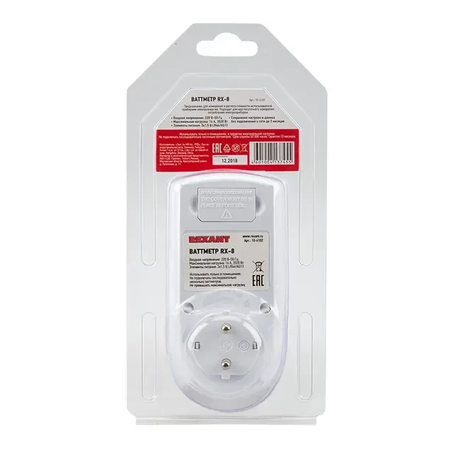 Бытовые ваттметры в розетку (счетчики потребляемой энергии) используются для замера потребляемой мощности различными электроприборами, такими как чайник, холодильник, телевизор, кондиционер, обогреватель, стиральная машина и т.д., суммарный ток которых не превышает 16А. Осуществляют контроль над потреблением энергии устройствами, подключенными к устройству через стационарный сетевой шнур. Благодаря функции смены отображаемого дисплея ваттметры дополнительно показывают несколько параметров: напряжение и частоту тока сети, потребляемую прибором силу тока и мощность в киловатт-часах, суммарную потребленную прибором мощность в киловатт-часах и общую стоимость электроэнергии. Широкий диапазон показаний прибора также используется для определения тока утечки и перерасхода мощности. Ваттметры оснащены возможностью установки цены киловатт-часа, что позволяет одновременно рассчитать суммарную стоимость потребленной электроэнергии. Благодаря возможности установки двух ценовых режимов, дней недели и времени смены режима, данная модель подходит для круглосуточного измерения потребляемой электроэнергии. Ваттметр RX-8 оснащен ЖК дисплеем, тремя кнопками управления и дополнительной кнопкой сброса настроек и быстрой очистки данных. Отображаемые параметры: Текущее время Напряжение сети (В) Ток, потребляемый подключенным электроприбором (А) Активная потребляемая мощность подключенного электроприбора (Вт) Количество электроэнергии, потребленной подключенным электроприбором (кВт/ч) Частота переменного тока (Гц) Коэффициент мощности подключенного устройства Суммарное время работы и начисленная стоимость Время работы и начисленная стоимость в ценовой программе 1 (если данный параметр задан) Время работы и начисленная стоимость в ценовой программе 2 (если данный параметр задан) Технические характеристики: ход: 220 V~50 Гц Максимальная нагрузка: 16 A, 3600 Вт Диапазон измерения напряжения: 190-276 В АС Точность измерения напряжения: +/- 1 % Диапазон измерения тока: 0,01–16 А Точность измерения тока: +/- 1 % или +/- 0,01 A Диапазон мощности измеряемой нагрузки: 0,2–4416 Вт Точность измерения мощности нагрузки: +/- 1 % или +/- 0,2 Вт Диапазон отображения суммарного энергопотребления: 0,00-9999,99 кВт/ч Диапазон измеряемой частоты: 45-65 Гц Точность часов: +/- 1 минута в месяц Потребление без нагрузки: <0,5 Вт Температура работы: 0...+50 °C Элементы питания: 3x1,5 В LR44/AG13 в комплекте Время работы (сохранение настроек и данных) от элементов питания без подключения к сети: 3 месяца
