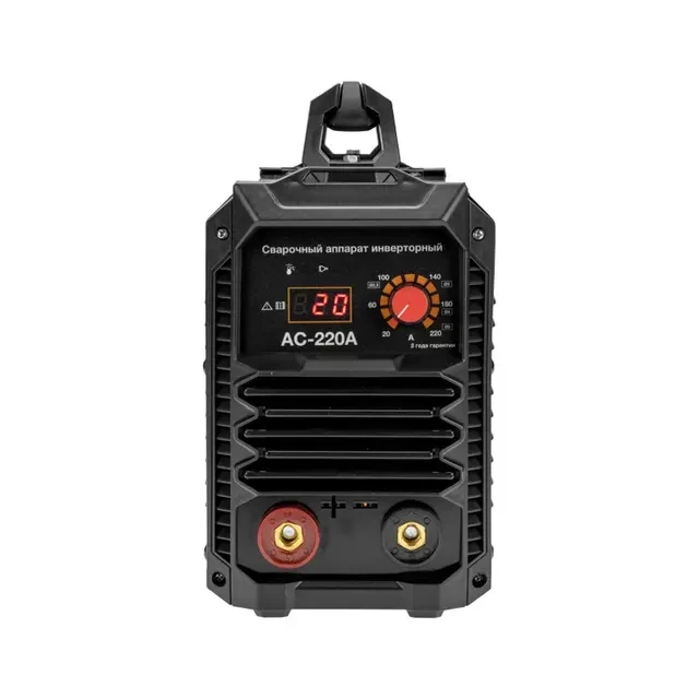 Инверторный сварочный аппарат REXANT АС-220А представляет собой компактный, надежный и удобный прибор для сварки MMA. Подходит для бытового и профессионального применения - для работы на строительных объектах, в гараже, в мастерской. Аппарат работает от сети 220 В. Данная модель имеет компактный корпус. Характеристики: Напряжение питающей сети: 220 +- 15% Частота питающей сети: 50-60 Гц Потребляемая энергия: 6,8 кВт Сварочный ток MMA: 20-220 А Рабочее напряжение ММА: 21,2-28 Напряжение холостого хода MMA: 70 В Потребление без нагрузки: 20 Вт Рабочий цикл: 60% Коэффициент мощности: 73% КПД: 85% Класс изоляции: F Класс защиты: IP 21S Масса, кг: 3,8 Функция поджига повышенным током (Антиприлипание) ДА Функция форсирования силы дуги (Горячий старт) ДА Защита от перепадов напряжения ДА Комплектация: Инверторный сварочный аппарат - 1 шт. Кабель длиной 1,8 метра с электрододержателем - 1 шт. Кабель длиной 1,2 метра с зажимом массы - 1 шт. Инструкция по эксплуатации -1 шт. Преимущества: Отсутствие брызг при сварке. Антиприлипание электродов. Плавная регулировка сварочного тока. Легкий старт (легкий поджиг дуги) Поддерживает обратную и прямую полярность при сварке. Работает с электродами 2-5 мм