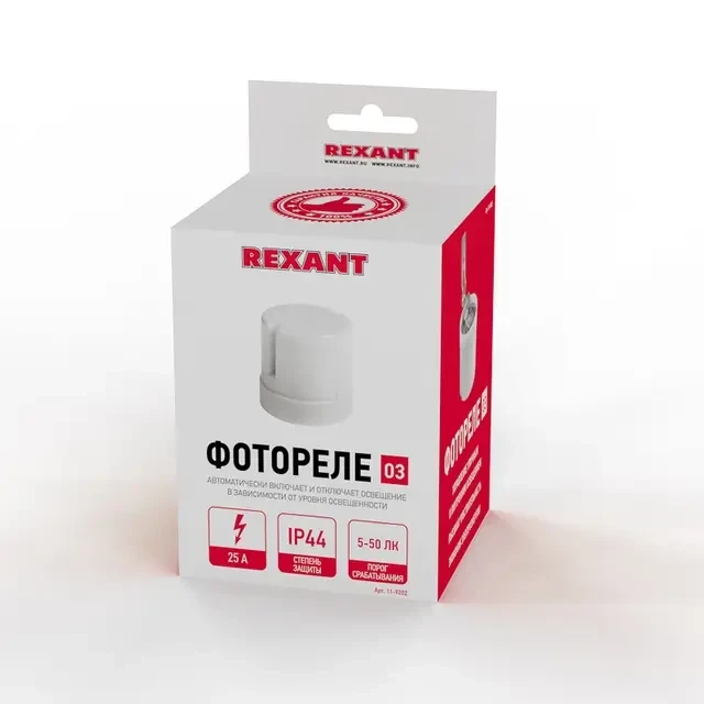 Фотореле — это светочувствительный автомат, замыкающий и размыкающий электрические цепи при изменении попадающего на него светового потока. Оно предназначено для автоматического управления нагрузкой, точнее управления лампами освещения, регулировки их работы в зависимости от освещения. Днем фотореле выключает светильники, а ночью включает. Напряжение: 230 В Частота тока: 50 Гц Номинальный ток: 25 А Порог освещенности: 5-50 Лк Степень защиты: IP44 Диапазон рабочих температур: –25...+40 °С