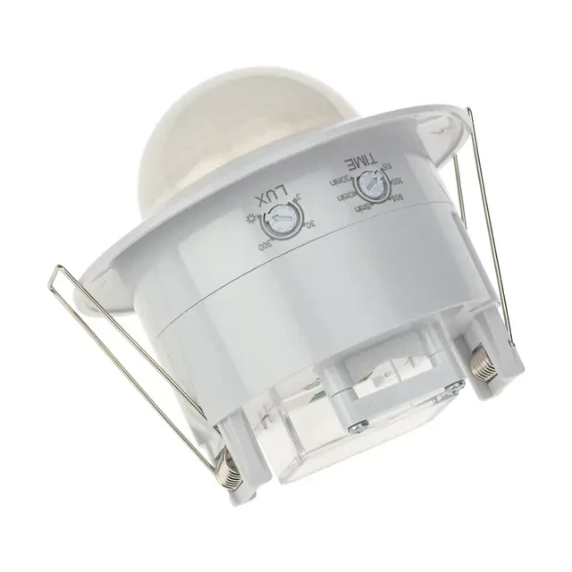 Датчик движения – это электронное устройство, которое используют для автоматического включения и выключения освещения в помещении. Он оснащен тремя сенсорами, которые обеспечивают угол обзора в 360 градусов. Датчик предназначен для использования в помещениях различного назначения, таких как офисы, магазины, склады и т.д. Основными характеристиками датчика являются: номинальное напряжение 230 В/50 Гц, мощность 2000 Вт, номинальный ток 9 А, порог освещенности 3–2000 Лк. Устройство имеет высокую чувствительность и быстро реагирует на движение в зоне его действия. Устройство легко монтировать в подвесной потолок с диаметром установочного отверстия 75 мм. Максимальная дальность срабатывания датчика составляет 20 метров. Выдержка включения может быть установлена в диапазоне от 10 до 420 секунд. Степень защиты – IP20.