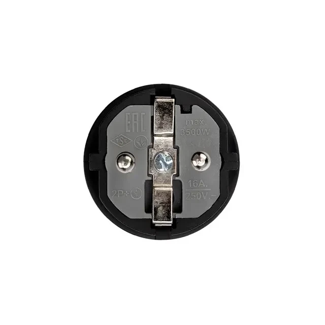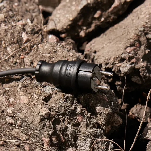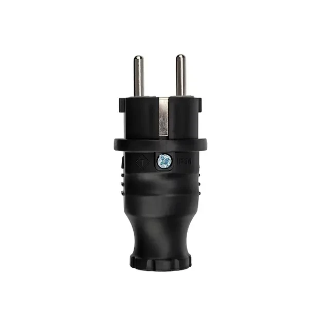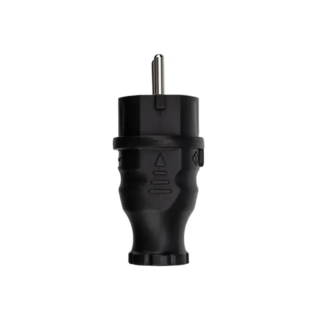Влагозащищенная вилка предназначена для подключения бытовых и профессиональных приборов к электросети. Вилка разработана для использования в сложных эксплуатационных условиях с высокой влажностью. Широко применяется в быту, на производстве и в строительстве. Степень защиты IP44 позволяет использовать вилку для организации электропитания под открытым небом, а в дождь – под навесом. Не допускается погружение в воду. Для обеспечения безопасности детали, соприкасающиеся с токоведущими частями выполнены из огнеупорного материала, устойчивого к температуре до +850 ⁰С. Ударопрочный разборный корпус выполнен из каучука: устойчив к ударам, вибрациям и другим механическим воздействиям. Заземление: есть. Сечение проводников: 0,75-2,5 мм². Контактная группа: MS-58 (латунь). Тип полюсов: 2Р+РЕ.