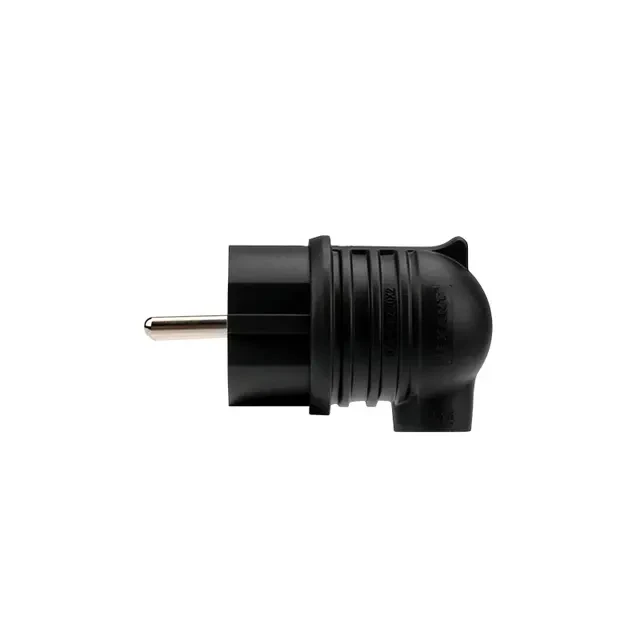 Угловая влагозащищенная электрическая вилка предназначена для подключения бытовых и профессиональных приборов к электросети. Вилка разработана для использования в сложных эксплуатационных условиях с высокой влажностью. Широко применяется в быту, на производстве и в строительстве. Степень защиты IP44 позволяет использовать вилку для организации электропитания под открытым небом, а в дождь – под навесом. Не допускается погружение в воду. Угловая форма вилки облегчает подключение в ограниченном пространстве и уменьшает износ кабеля. Для обеспечения безопасности детали, соприкасающиеся с токоведущими частями выполнены из огнеупорного материала, устойчивого к температуре до +850 ⁰С. Ударопрочный разборный корпус выполнен из каучука: устойчив к ударам, вибрациям и другим механическим воздействиям. Заземление: есть. Сечение проводников: 0,75-2,5 мм². Контактная группа: MS-58 (латунь). Тип полюсов: 2Р+РЕ.