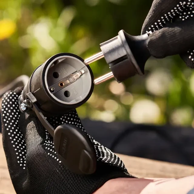 Электрическая влагозащищенная переносная розетка предназначена для подключения бытовых и профессиональных приборов к электросети. Разработана для использования в сложных эксплуатационных условиях с высокой влажностью. Широко применяется в быту, на производстве и в строительстве. Степень защиты IP44 позволяет использовать розетку для организации электропитания под открытым небом, а в дождь – под навесом. Не допускается погружение в воду. Розетка оснащена защитной крышкой. Для обеспечения безопасности детали, соприкасающиеся с токоведущими частями выполнены из огнеупорного материала, устойчивого к температуре до +850 ⁰С. Ударопрочный разборный корпус выполнен из каучука: устойчив к ударам, вибрациям и другим механическим воздействиям. Заземление: есть. Сечение проводников: 0,75-2,5 мм². Контактная группа: MS-58 (латунь). Тип полюсов: 2Р+РЕ.