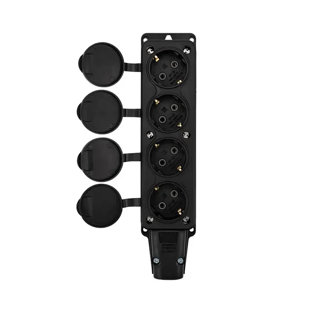 Электрическая влагозащищенная розетка предназначена для подключения бытовых и профессиональных приборов к электросети. Разработана для использования в сложных эксплуатационных условиях с высокой влажностью. Широко применяется в быту, на производстве и в строительстве. Может быть использована в переносном или стационарном варианте. Степень защиты IP54 позволяет использовать розетку для организации электропитания под открытым небом, а в дождь – под навесом. Не допускается погружение в воду. Количество штепсельных розеток с заземляющим контактом – 4 шт. Допускается присоединение четырех вилок одновременно с суммарным максимальным током по ним 16 А. Каждое розеточное место оснащено защитной крышкой. Для обеспечения безопасности детали, соприкасающиеся с токоведущими частями выполнены из огнеупорного материала, устойчивого к температуре до +850 ⁰С. Для крепления к поверхности предусмотрены специальные отверстия. Ударопрочный разборный корпус выполнен из каучука: устойчив к ударам, вибрациям и другим механическим воздействиям. Заземление: есть. Сечение проводников: 0,75-2,5 мм². Контактная группа: MS-58 (латунь). Тип полюсов: 2Р+РЕ.