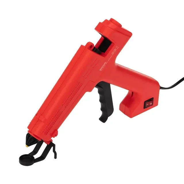 Клеевой пистолет предназначен склеивания поверхностей различных материалов, герметизации стыков и швов, фиксации проводов с помощью расплавленной клеевой массы. Используется в ремонте, декорировании, в изготовлении поделок и моделировании; будет полезен как на производстве, так и в быту. Корпус пистолета изготовлен из ударопрочной пластмассы, поэтому инструмент служит дольше, а специальная скоба с нишей для сбора капель клея позволяет устанавливать пистолет в режиме ожидания. Сопло пистолета защищено клапаном от произвольного вытекания клея и оснащено термостойким силиконовым протектором, минимизирующим риск ожогов при случайном контакте и защищающим рабочую зону от высокой температуры. На корпусе пистолета есть кнопка включения, благодаря которой пользователю удобнее контролировать использование пистолета. Пистолет используется с клеевыми стрежнями диаметром 11 мм. Комплектация: клеевой пистолет (1 шт.), паспорт (1 шт.), клеевые стержни (2 шт.). ОСНОВНЫЕ ПРЕИМУЩЕСТВА 1. Быстрый нагрев. 2. Защита от произвольного вытекания клея из плавильной камеры. 3. Стабильная температура при постоянной работе. 4. Термостойкий силиконовый протектор сопла с длительным сроком службы. 5. Возможность управления одной рукой, легкий контроль плавления и подачи клея.