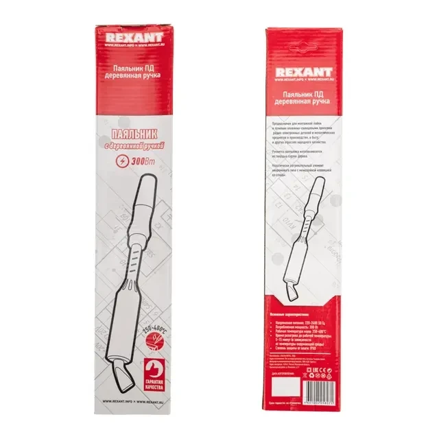 Паяльник высокомощный, серия ЭПСН, керам. тэн, 300Вт, 230В, с дерев. ручкой, коробка REXANT