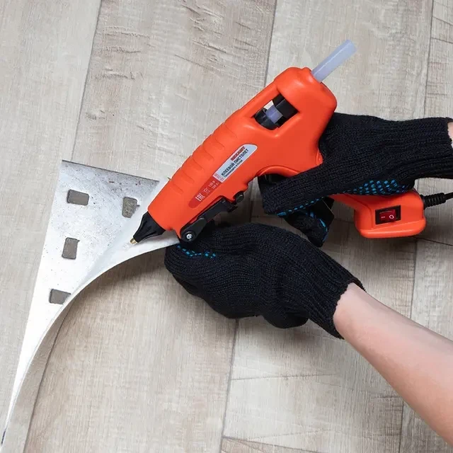 Клеевой пистолет предназначен склеивания поверхностей различных материалов, герметизации стыков и швов, фиксации проводов с помощью расплавленной клеевой массы. Используется в ремонте, декорировании, в изготовлении поделок и моделировании; будет полезен как на производстве, так и в быту. Корпус пистолета изготовлен из ударопрочной пластмассы, поэтому инструмент служит дольше, а специальная скоба автоматически выпадает при нажатии кнопки и позволяет устанавливать пистолет в режиме ожидания. Эргономичная рукоятка обеспечивает комфортный и надежный захват инструмента. Сопло пистолета защищено клапаном от произвольного вытекания клея и оснащено термостойким силиконовым протектором, минимизирующим риск ожогов при случайном контакте и защищающим рабочую зону от высокой температуры. Есть возможность удлинить сопло с помощью специального наконечника (12-1680). Автоматическое регулирование температуры внутри плавильной камеры позволяет поддерживать оптимальную для клеевых стрежней температуру. На корпусе пистолета есть кнопка включения, благодаря которой пользователю удобнее контролировать использование пистолета. Провод длиной 1,4 метра позволяет работать на удобном расстоянии от розетки. Пистолет используется с клеевыми стрежнями диаметром 11 мм. Комплектация: клеевой пистолет (1 шт.), паспорт (1 шт.). ОСНОВНЫЕ ПРЕИМУЩЕСТВА 1. Быстрый нагрев. 2. Защита от произвольного вытекания клея из плавильной камеры. 3. Стабильная температура при постоянной работе. 4. Интерактивный керамический нагреватель, позволяющий экономить до 50 % электроэнергии. 5. Термостойкий силиконовый протектор сопла с длительным сроком службы. 6. Возможность управления одной рукой, легкий контроль плавления и подачи клея. 7. Автоматическая регулировка температуры в плавильной камере, подходящая для универсальных клеевых стержней ЭВА. 8. Запатентованная технология плавильной камеры помогает избегать переполнения, утечки и обратного потока клея. 9. Запатентованная облегченная конструкция корпуса пистолета, позволяющая работать долгое время без напряжения рук. 10. Новая конструкция спускового механизма делает подачу клея легкой и удобной, что расширяет спектр применения устройства.