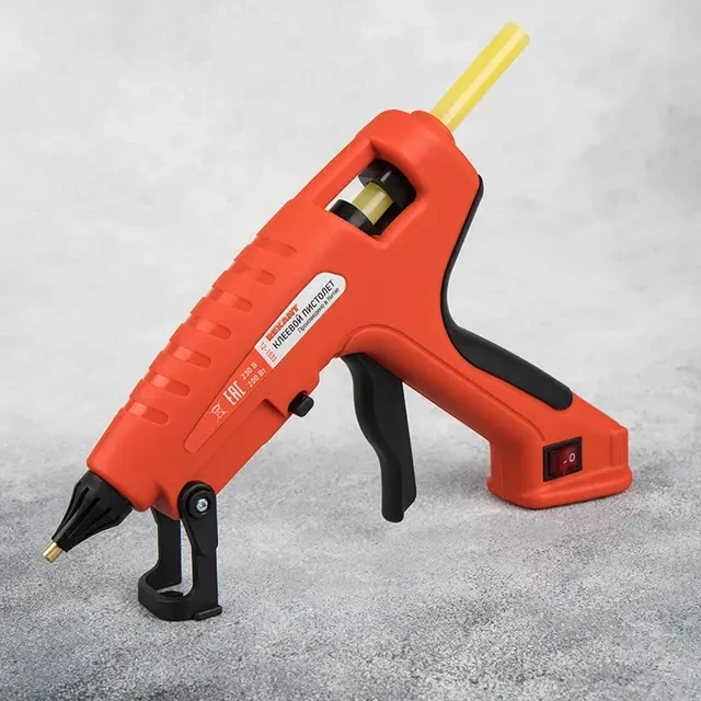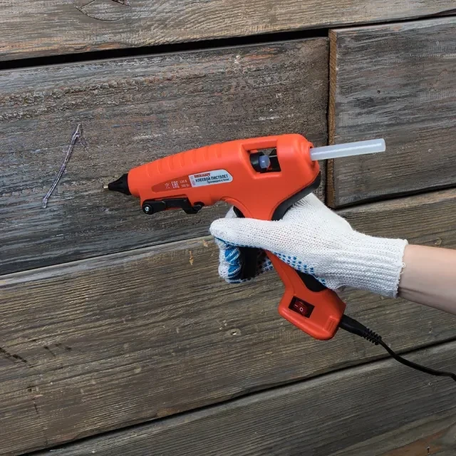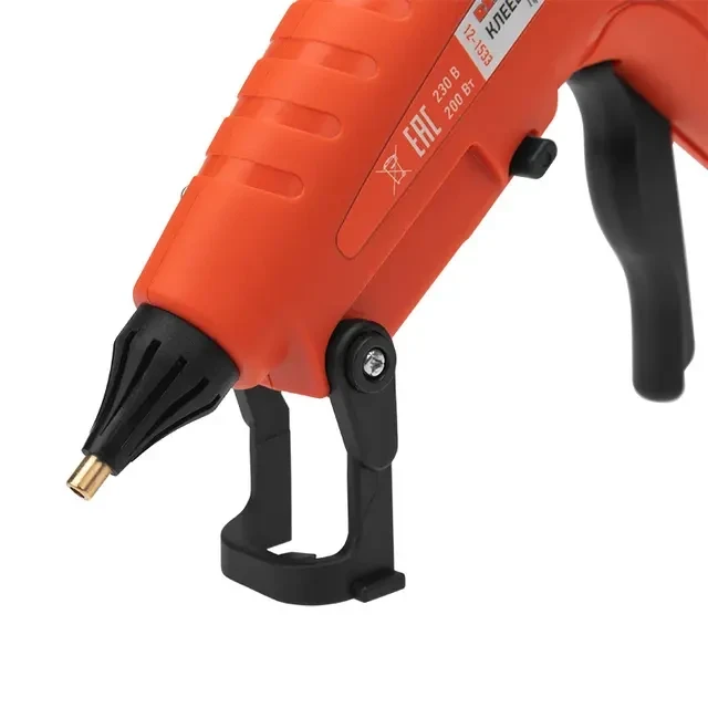 Клеевой пистолет предназначен склеивания поверхностей различных материалов, герметизации стыков и швов, фиксации проводов с помощью расплавленной клеевой массы. Используется в ремонте, декорировании, в изготовлении поделок и моделировании; будет полезен как на производстве, так и в быту. Корпус пистолета изготовлен из ударопрочной пластмассы, поэтому инструмент служит дольше, а специальная скоба автоматически выпадает при нажатии кнопки и позволяет устанавливать пистолет в режиме ожидания. Эргономичная рукоятка обеспечивает комфортный и надежный захват инструмента. Сопло пистолета защищено клапаном от произвольного вытекания клея и оснащено термостойким силиконовым протектором, минимизирующим риск ожогов при случайном контакте и защищающим рабочую зону от высокой температуры. Есть возможность удлинить сопло с помощью специального наконечника (12-1680). Автоматическое регулирование температуры внутри плавильной камеры позволяет поддерживать оптимальную для клеевых стрежней температуру. На корпусе пистолета есть кнопка включения, благодаря которой пользователю удобнее контролировать использование пистолета. Провод длиной 1,4 метра позволяет работать на удобном расстоянии от розетки. Пистолет используется с клеевыми стрежнями диаметром 11 мм. Комплектация: клеевой пистолет (1 шт.), паспорт (1 шт.). ОСНОВНЫЕ ПРЕИМУЩЕСТВА 1. Быстрый нагрев. 2. Защита от произвольного вытекания клея из плавильной камеры. 3. Стабильная температура при постоянной работе. 4. Интерактивный керамический нагреватель, позволяющий экономить до 50 % электроэнергии. 5. Термостойкий силиконовый протектор сопла с длительным сроком службы. 6. Возможность управления одной рукой, легкий контроль плавления и подачи клея. 7. Автоматическая регулировка температуры в плавильной камере, подходящая для универсальных клеевых стержней ЭВА. 8. Запатентованная технология плавильной камеры помогает избегать переполнения, утечки и обратного потока клея. 9. Запатентованная облегченная конструкция корпуса пистолета, позволяющая работать долгое время без напряжения рук. 10. Новая конструкция спускового механизма делает подачу клея легкой и удобной, что расширяет спектр применения устройства.
