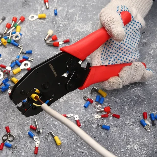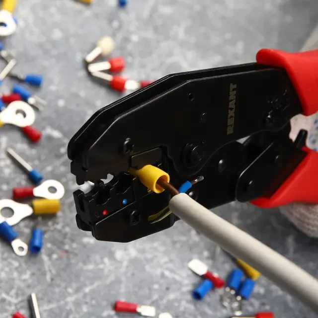 Кримпер HT-336H разработан для профессионального обжима изолированных наконечников и клемм сечения 0,5-6 мм². Корпус инструмента выполнен из высокопрочной закаленной инструментальной стали с воронением, что обеспечивает длительный срок службы и устойчивость к механическим нагрузкам. Съемные обжимные губки, изготовленные методом микролитья, гарантируют идеальное соответствие размерам и форме контактов. Инструмент оснащен различными функциональными механизмами, которые упрощают процесс работы. Передаточный механизм снижает нагрузку на руку при работе. Возвратный механизм автоматически возвращает ручки в исходное положение после каждого цикла обжима. Регулятор силы сжатия позволяет настроить оптимальное усилие обжима для разных типов клемм. Храповой механизм обеспечивает качественную опрессовку без преждевременного разжатия ручек. Нескользящие рукоятки выполнены из плотного синтетического материала, что делает работу комфортной и безопасной даже при длительном использовании.