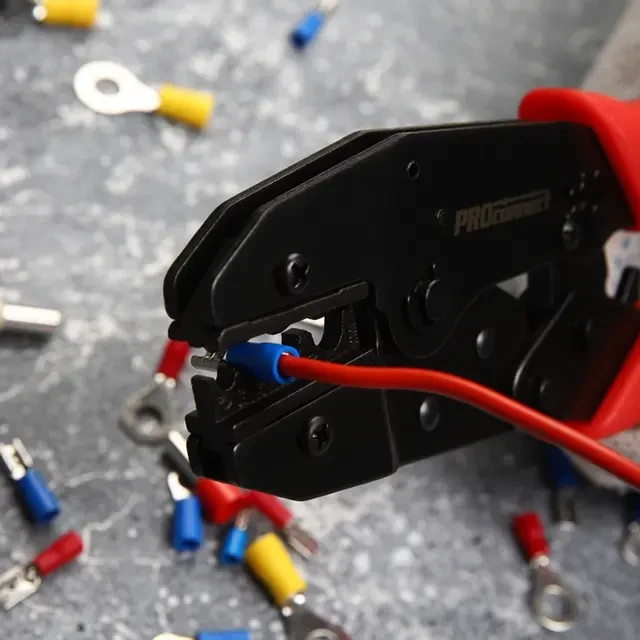 Кримпер HT-336N разработан для профессионального обжима изолированных и неизолированных соединительных гильз сечением 1,5–10 мм². Корпус инструмента выполнен из высокопрочной закаленной инструментальной стали с воронением, что обеспечивает длительный срок службы и устойчивость к механическим нагрузкам. Съемные обжимные губки, изготовленные методом микролитья, гарантируют идеальное соответствие размерам и форме контактов. Инструмент оснащен различными функциональными механизмами, которые упрощают процесс работы. Передаточный механизм снижает нагрузку на руку при работе. Возвратный механизм автоматически возвращает ручки в исходное положение после каждого цикла обжима. Регулятор силы сжатия позволяет настроить оптимальное усилие обжима для разных типов клемм. Храповой механизм обеспечивает качественную опрессовку без преждевременного разжатия ручек. Нескользящие рукоятки выполнены из плотного синтетического материала, что делает работу комфортной и безопасной даже при длительном использовании.