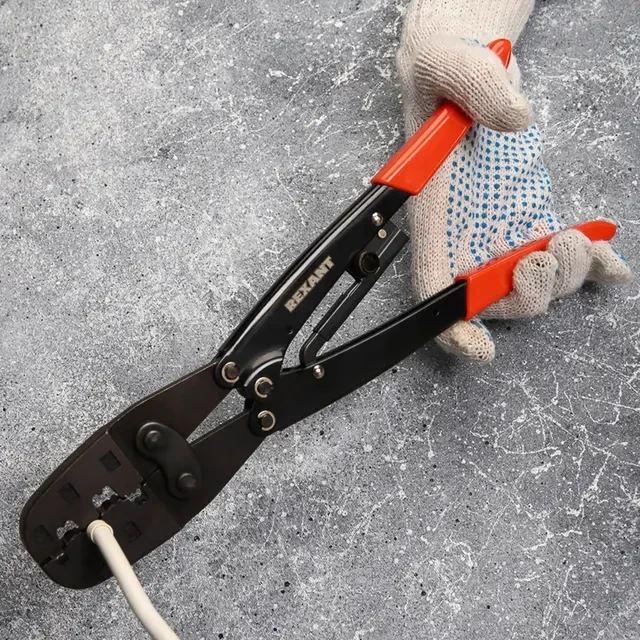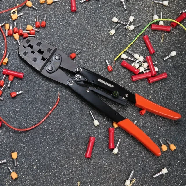 Механический пресс HT-50WF для обжима изолированных и неизолированных втулочных наконечников сечением 10–50 мм² и 2х6–2х16 мм². Корпус пресса изготовлен из закаленной инструментальной стали с воронением, благодаря чему устойчив к механическим воздействиям и имеет продолжительный срок службы. Профилированные пятипозиционные обжимные губки предназначены для надежного захвата и эффективного обжима соединительных элементов. Храповой механизм производит полный цикл качественной опрессовки. Конструкция, выполненная по принципу "двойной рычаг", позволяет прикладывать меньше усилий для обжима. На губки нанесена справочная маркировка для удобного и быстрого поиска нужной позиции в матрице. Однокомпонентные защитные рукоятки выполнены из плотного нескользящего синтетического материала, который делает работу с инструментом легкой и приятной.