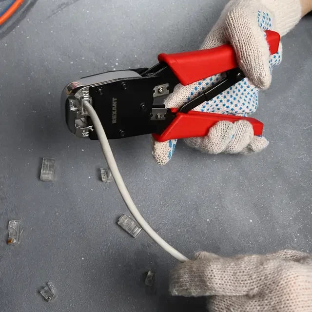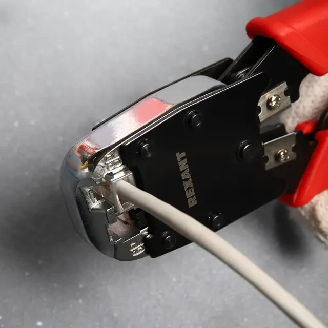 Кримпер HT-500R предназначен для обжима компьютерных и телефонных разъемов RJ-45, RJ-12, RJ-11. Корпус кримпера изготовлен из высокопрочной хром-ванадиевой стали с воронением, благодаря чему устойчив к механическим воздействиям и имеет продолжительный срок службы. Обладает дополнительными функциями обрезки проводов и снятия изоляции с плоских и круглых кабелей. Оснащен возвратным механизмом, который обеспечивает обратный ход рукояток и упрощает процесс работы с инструментом. Храповой механизм производит полный цикл качественной опрессовки. Однокомпонентные защитные рукоятки выполнены из плотного нескользящего синтетического материала, который делает работу с инструментом легкой и приятной.