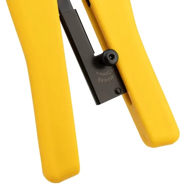 Кримпер HT-200R предназначен для обжима компьютерных и телефонных разъемов RJ-45, RJ-12, RJ-11, RJ-10. Корпус кримпера изготовлен из высокопрочной хром-ванадиевой стали с воронением, благодаря чему устойчив к механическим воздействиям и имеет продолжительный срок службы. Обладает дополнительными функциями обрезки проводов и снятия изоляции с плоских и круглых кабелей. Оснащен возвратным механизмом, который обеспечивает обратный ход рукояток и упрощает процесс работы с инструментом. Храповой механизм производит полный цикл качественной опрессовки. Однокомпонентные защитные рукоятки выполнены из плотного нескользящего синтетического материала, который делает работу с инструментом легкой и приятной.