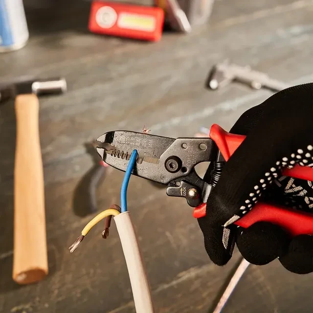Стриппер HT-5021 предназначен для снятия внешней изоляции одножильного и многожильного кабеля сечением 0,6–2,6 мм². Также инструмент осуществляет зажим, обработку и обрезку кабеля стальных и медных проводников, формирование монтажных петель. Корпус инструмента изготовлен из высокопрочной инструментальной стали, благодаря чему устойчив к механическим воздействиям и имеет продолжительный срок службы. Специальная конструкция инструмента с маркировкой позволяет зачищать изоляцию без повреждения жилы провода. Оснащен фиксатором закрытого положения и возвратной пружиной, которая обеспечивает обратный ход рукояток и упрощает процесс работы с инструментом. Также в стриппере предусмотрена режущая кромка для равномерной обрезки проводников. Однокомпонентные защитные рукоятки выполнены из плотного нескользящего синтетического материала, который делает работу с инструментом легкой и приятной.