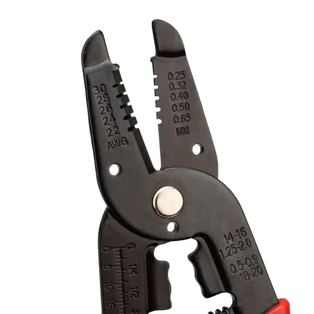 Стриппер HT-1043 предназначен для снятия внешней изоляции одножильного и многожильного кабеля сечением 0,25–0,65 мм². Также инструмент осуществляет зажим, обработку и обрезку кабеля стальных и медных проводников, формирование монтажных петель. Корпус стриппера выполнен из высокопрочной инструментальной стали, благодаря чему устойчив к механическим воздействиям и имеет продолжительный срок службы. Специальная конструкция инструмента с маркировкой позволяет зачищать изоляцию без повреждения жилы провода. Оснащен возвратной пружиной, которая обеспечивает обратный ход рукояток и упрощает работу с инструментом. Также в стриппере предусмотрена режущая кромка для равномерной обрезки проводников. Однокомпонентные защитные рукоятки выполнены из плотного нескользящего синтетического материала, который делает работу с инструментом легкой и приятной.