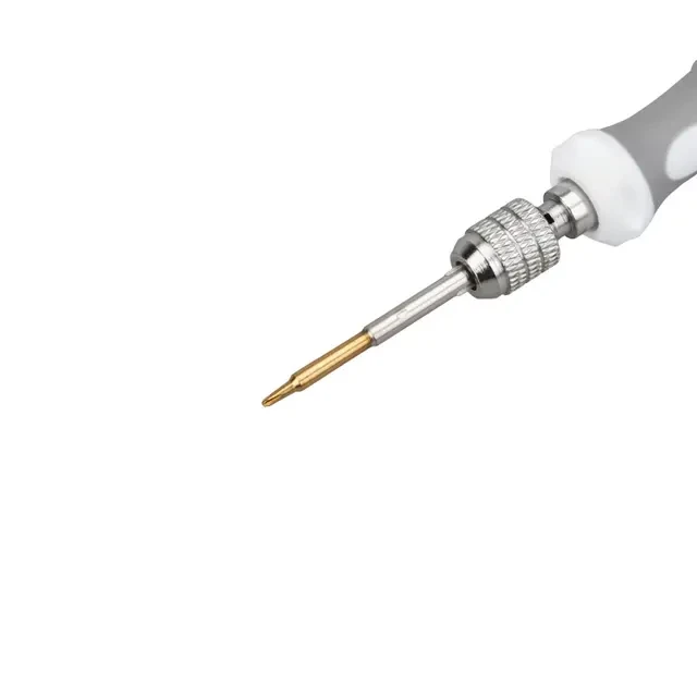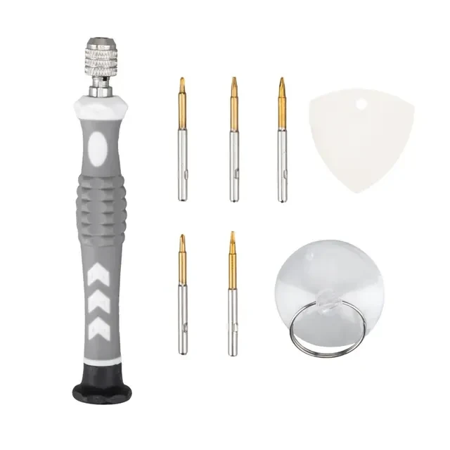 Набор отверток REXANT 8 в 1 оптимален для выполнения прецизионных работ в электронике и электромеханике, ремонта большинства видов и моделей популярной портативной техники: смартфонов, часов, планшетных ПК, игровых приставок, фотокамер, электронных сигарет. Комплект пригодится для ремонта техники Apple. Инструменты выполнены из качественной стали, обладающей высокой прочностью к механическим повреждениям и образованию ржавчины. Отвертка эргономичной формы обладает вращающейся шляпкой и противоскользящей рукояткой. В наборе предусмотрены медиатор для снятия корпуса, извлечения деталей, схем и присоска для удаления экрана. Цанговый зажим обеспечивает быструю замену и надежную фиксацию насадок. Характеристики: Pentalobe (шлиц для продукции Apple): 0.8 TORX (шестигранная звезда): T2, T5 PHILLIPS (крестовая): PH1.2, PH1.5 Отвертка: да Медиатор: да Присоска: да Посадка бит: 1/8 Материал насадок: хромованадиевая сталь Материал рукоятки: ABS-пластик