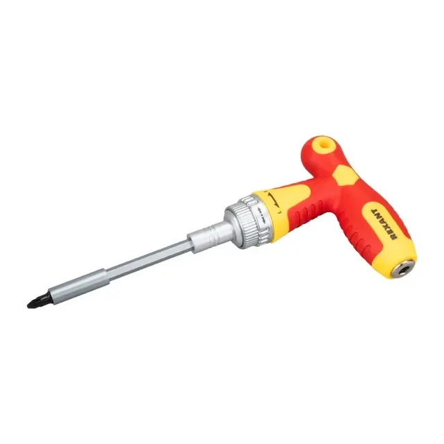 Набор отверток REXANT 33 в 1 применяется для монтажа и демонтажа винтов, шурупов, саморезов и других крепежных изделий. Биты выполнены из качественной хромованадиевой стали. Т-образная отвертка 2 в 1 оснащена реверсивным механизмом (реверс по часовой стрелке/против часовой стрелки/фиксация), а также стандартным отверстием под насадки для создания классического инструмента. В основании есть отверстие, которое может использоваться для создания дополнительного рычага усилия при работе, если установить в него металлический пруток. Двухкомпонентная рукоятка оснащена магнитным держателем, что обеспечивает быструю замену и надежную фиксацию бит. Для удобства хранения и транспортировки набор поставляется в органайзере, который оснащен отсеком для хранения мелкого крепежа. Комплектация: Шестигранная звезда: T5, T6, T10, T15, T20, T25, T30 Шестигранник: H3, H4, H5, H6 Крестовая: PZ2, PZ3 Крестовая: PH0, PH1, PH2 Шлицевая: SL3, SL5, SL6 Tri-Wing (трехлистник): Y2, Y3 Треугольный шлиц: 2.3 U6.0 Головки: M6, M7, M8, M9, M10, M11 Жесткий удлинитель Гибкий удлинитель Адаптер