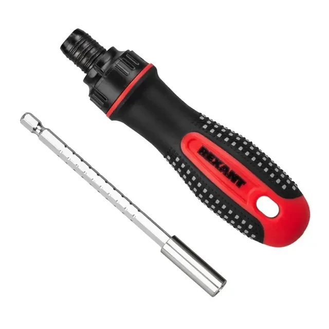Набор головок и бит с реверсивной отверткой REXANT 21 в 1 применяется для монтажа и демонтажа винтов, шурупов, саморезов и других крепежных изделий. Насадки выполнены из качественной хромованадиевой стали, биты имеют намагниченные наконечники. Трехкомпонентная прорезиненная рукоятка с магнитным держателем не скользит и не прокручивается в ладони, что обеспечивает комфорт при работе. Реверсивный механизм срабатывает как по часовой стрелке, так и против часовой стрелки, а также имеет фиксацию положения. Для удобного хранения и транспортировки насадок предусмотрены пластиковые подставки. В основании инструмента есть отверстие для подвеса В наборе поставляются: биты SL3.0, SL5.0, SL6.0, PH1, PH2, PH3, T10, T15, T20; головки M5, M6, M7, M8, M9, M10, M11, M12, M13; переходник: AD (□) и жесткий удлинитель.