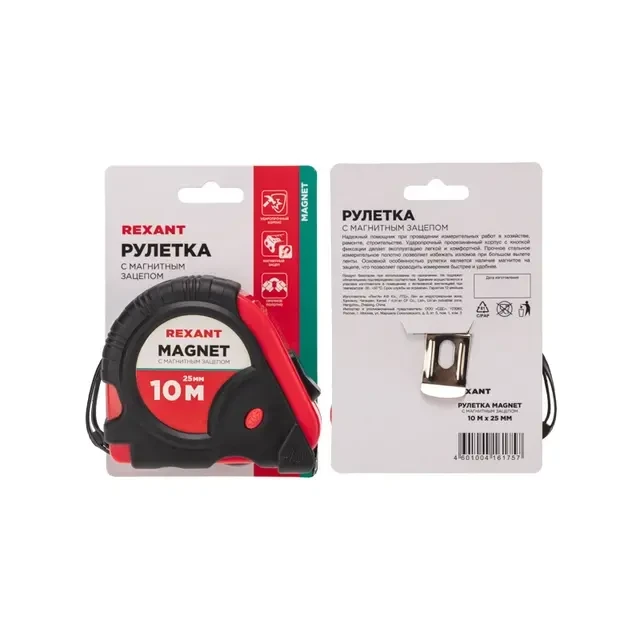 Рулетка измерительная Профи прорезиненный корпус, магнитная, 10м х 25мм REXANT
