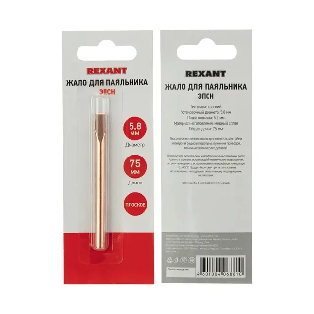 Жало для паяльника медное ЭПСН, ?5,8мм, тип плоский, блистер REXANT