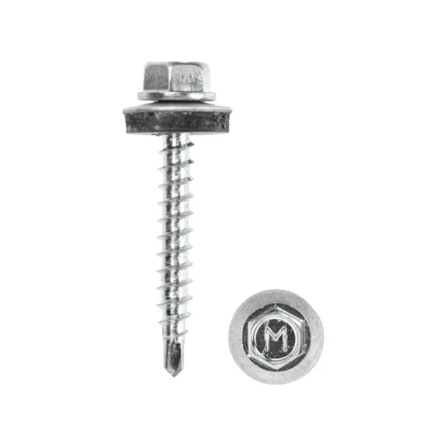 Кровельный саморез 4,8х35 мм с внешней шестигранной головкой предназначен для монтажа кровли к деревянной обрешетке и тонкостенным металлическим конструкциям. Саморезы изготовлены из стали и покрыты цинком, что делает их устойчивыми к коррозии и механическим повреждениям, что особенно важно при эксплуатации на крыше, где материал подвергается воздействию атмосферных факторов. EPDM-уплотнитель на шляпке обеспечивает плотное и герметичное соединение элементов кровли. Наконечник-сверло легко проникает в материал толщиной до 5 мм без предварительного сверления, что упрощает процесс монтажа. Поставляются в крафтовой коробке в количестве 250 штук.