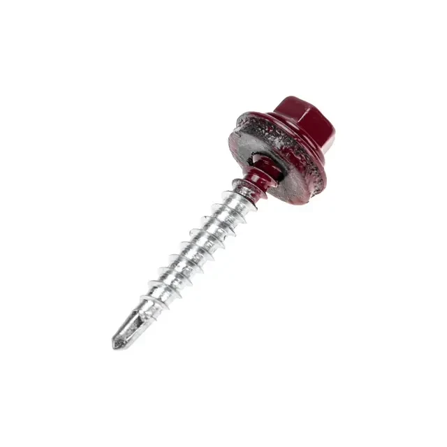 Кровельный саморез 4,8х35 мм с внешней шестигранной головкой предназначен для монтажа кровли к деревянной обрешетке и тонкостенным металлическим конструкциям. Саморезы изготовлены из стали и покрыты цинком, что делает их устойчивыми к коррозии и механическим повреждениям, что особенно важно при эксплуатации на крыше, где материал подвергается воздействию атмосферных факторов. EPDM-уплотнитель на шляпке обеспечивает плотное и герметичное соединение элементов кровли. Наконечник-сверло легко проникает в материал толщиной до 5 мм без предварительного сверления, что упрощает процесс монтажа. Шестигранная головка самореза покрыта порошковой краской RAL 3005, благодаря чему подобрать саморез под цвет крыши становится проще. Поставляются в крафтовой коробке в количестве 250 штук.