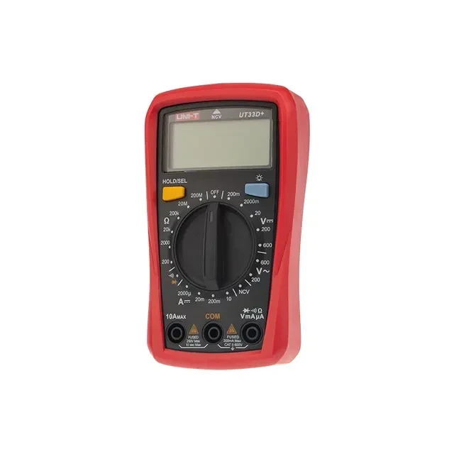 Мультиметр — электроизмерительный прибор, который включает в себя несколько функций и набор измеряемых параметров. Все приборы серии UT-33+ измеряют напряжение, сопротивление и ток в цепи. Серия 33+ идет на замену серии 33. Прибор UT33D+ является портативным мультиметром, компактные размеры позволяют всегда носить его с собой. У обновленной модели теперь есть встроенный бесконтактный детектор напряжения NCV. Несмотря на малые размеры, данный мультиметр обладает широким функционалом и это выгодно отличает его от других. С его помощью вы сможете измерить постоянное и переменное напряжение, постоянный ток и сопротивление. А также с помощью данного прибора можно проводить тестирование диодов и осуществлять прозвонку целостности цепи. Инженеры старались сделать прибор максимально удобным для использования. Выбор измеряемых величин и пределов измерений производится с помощью усиленного поворотного регулятора, благодаря которому исключается возможность случайного нажатия. Мультиметр UT33D+ оснащен функцией DATA HOLD, и зафиксировав результат измерений, вы в любое время сможете считать полученные значения. Дисплей прибора оснащен подсветкой, которая позволяет проводить измерения даже в слабоосвещенных местах. Прибор изготовлен из высококачественных материалов и комплектуется защитным чехлом, который позволит избежать повреждений прибора от падений и царапин. Мультиметр снабжен подставкой, которая позволяет разместить прибор на любой плоской поверхности. Характеристики: Постоянное напряжение: до 600 В +/- (0,5%+2) Переменное напряжение: до 600 В +/- (0,7%+3) Постоянный ток: до 10 А +/- (1,0%+2) Сопротивление: до 200 МОм +/- (0,8%+2) 4-разрядный дисплей Ручной выбор предела измерений Тестирование диодов Бесконтактный детектор напряжения NCV Режим удержания измерений DATA HOLD Прозвонка целостности цепи Индикатор разряда батареи: да Импеданс: около 10 МОм Размер аппарата: 78х48х134 мм Тип батареи: 2 шт. ААА Комплектация: мультиметр, измерительные щупы, батареи, инструкция, упаковка.