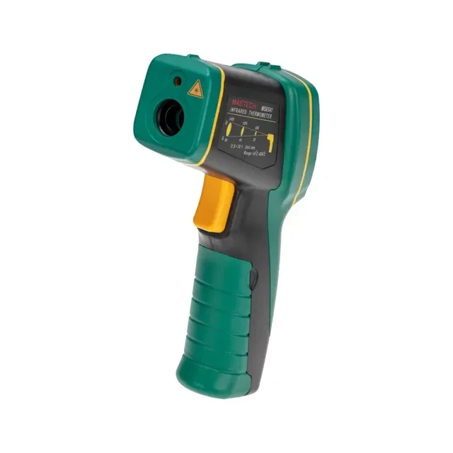 Пирометр – прибор, предназначенный для бесконтактного измерения температуры различных объектов. Принцип действия построен на измерении уровня теплового излучения объекта в диапазонах инфракрасного излучения. Прибор MS6541 является пирометром профессионального уровня, применяется в сферах ЖКХ, промышленности, на предприятиях, в бытовых целях и везде, где большое значение приобретает контроль температур. Умеет измерять температуру при оптическом разрешении 30 к 1 до 760 C и контактным методом дополнительно, с помощью термопары до 300 С. Приборы такого типа необходимы в роли средств безопасности и контроля температурных норм в различных технологических и производственных сферах, так как физическое взаимодействие с объектом измерении ненужно и полностью отсутствует возможность получения ожога или других связанных с большими температурами травм. Пирометр MS6541 оснащен сдвоенным энергосберегающим дисплеем с подсветкой, при неиспользовании в течение 10 секунд, выключается сам и запускается мгновенно при нажатии на курок. Имеет лазерный прицел, что позволяет проводить более точные измерения именно тех объектов или областей на объекте, которые необходимо проверить. На управляющей панели есть возможность выбора измерений минимальной, максимальной и средней температуры и возможность выбора температурной шкалы (Цельсия, Фаренгейта). А также прибор способен проводить измерения в нескольких режимах: максимальные, минимальные, средние и DIF измерения. Калибровка и тестирование приборов произведено под контролем компании СДС. Характеристики: Память данных: 100 групп Спектральный отклик: 8~14 мкм Лазер <1 мВт/630-670 нм Выбор измерения в C/F Время отклика: <500 мс Относительная влажность: 10~90% Лазерный целеуказатель Оповещение: высокий/низкий уровень Автоматическое отключение MAX/MIN/AВG/DIF Удержание данных Подсветка дисплея Индикация низкого уровня заряда батареи Электропитание: 1 x 9 В 6F22 Battery Размер: 192х95х83 мм Вес: 275 г Температура IRT: -50~0/-58~32 ± 4/± 7,2 0 400~400 ±(1,5% +2) 32~752 ±(1,5% +3,6) 400~760 ±(2,0% +2) 752~1400 ±(2,0% +3,6) Температура K-T: -50 300 ~ 300 ±(1,5% +3) -58 ~ 572 ±(1,5% +5,4) Разрешение: <1000 0,1/0,1 >1000 1/1 ℉ Повторяемость: ± 0,1 ℃ Коэффициент излучения: 0,10~1,0 Оптическое разрешение: 30:1