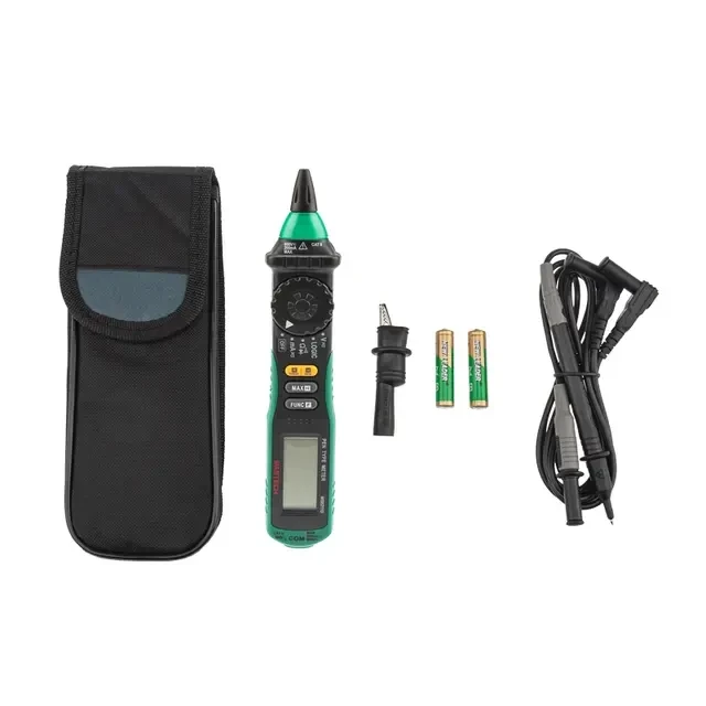 Цифровой мультиметр MASTECH MS8211D — прибор 2 в 1 - тестер напряжения и мультиметр, позволяющий измерять постоянное и переменное напряжение, постоянный и переменный ток и сопротивление. Он имеет режим «прозвонка», диод-тест. Особенность этого мультиметра заключается в двух функциях — измерение тока с защитой самовосстанавливающимся предохранителем и тест логических уровней. Мультиметр имеет звуковую и световую индикацию. Модель работает от 2 батареек 1.5 В ААА. Характеристики: Максимальное значение: 1999 Измерение постоянного напряжения: 200 мВ/2 В/20 В/200 В/600 В ±(0.7%+2) Измерение переменного напряжения: 200 мВ/2 В/20 В/200 В ±(0.8%+3); 600 В ±(1.0%+3) Измерение постоянного тока: 20 m/200 mA: ±1.5% Измерение переменного тока: 20 m/200 mA: ±2.0% Измерение сопротивления 200 Ом/2 кОм/20 кОм/200 кОм/2 МОм/20 МОм (±1%) Прозвонка цепей на проводимость звуковой сигнал при сопротивлении ниже 50 Ом Тест логических уровней КМОП и ТТЛ (+ двухцветная светодиодная индикация) Tест диодов Автоматическое отключение питания Удержание данных на дисплее DATA HOLD Защита от перегрузок Источник питания батарея 1,5 В (AAA) x 2 Габариты 208×38×29 мм Комплектация: Мультиметр-пробник MASTECH MS8211D (1 шт.) Тестовый щуп (1 шт.) Кейс (1 шт.) Батарея AAA (2 шт.) Инструкция по эксплуатации (1 шт.)