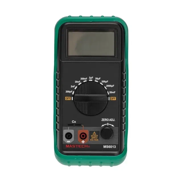 Цифровой измеритель емкости MASTECH MY6013A позволяет измерять емкостные характеристики конденсаторов и участков электрических цепей. Девять диапазонов позволяют точно измерять емкость от 0.2 нФ до 20 мФ практически любых конденсаторов, применяемых в электронике, в разрабатывающих лабораториях, на производстве, в сервисных центрах и школах. Единицы отсчета: 1999 Количество измерений в секунду: 3 (0.5%) Диапазоны и погрешность измерений Емкость конденсаторов: 200пФ/2000пФ/0,02мкФ/0,2мкФ/2мкФ/20мкФ/200мкФ/2000мкФ/20000мкФ±2% Максимальная частота (F): 800 Гц Минимальная частота (F): 8 Гц Безопасность и условия эксплуатации Максимальное рабочее напряжение: 250 В Размер: 91х189х32 мм Вес: 240 г