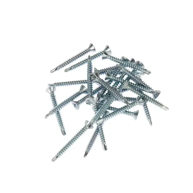 Область применения: - Сборка деревянных конструкций (каркасы, лаги, стропила); - Сборка электротехнических и сантехнических изделий; - Сборка мебели (установка петель, сборка мягкой мебели, монтаж ножек и ручек); - Отделочные и бытовые работы (крепление дверей и окон, установка мебели и электроники); - Крепление к металлическим конструкциям с предварительным сверлением. Преимущества: - Цинковое покрытие обеспечивает надежную защиту от коррозии и механических повреждений; - Бур (сверло) позволяет крепить саморез не только к пластиковой поверхности, но и к металлической сердцевине изделия; - Если толщина металлического профиля менее 2 мм, то предварительное сверление монтажного отверстия не требуется. Назначение: - Крепление металлического профиля в рамных пластиковых конструкциях; - Крепление механизмов открывания-закрывания, замков, петель, крепежных пластин. Материал: сталь С1022 Покрытие: белый цинк Шаг резьбы: частый Тип шлица: Philips (PH) Тип головы: потайная головка с насечками Тип наконечника: сверло Место использования: универсальный Размер: 3.9х32