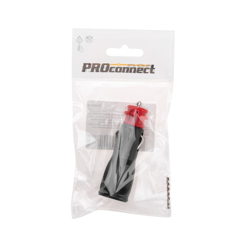 Штекер автоприкуривателя PROconnect предназначен для подключения различных электронных устройств к бортовой сети автомобиля. Изделие позволяет через розетку прикуривателя автомобиля передать напряжение 12 B/24 В на различные автомобильные устройства: радар-детектор, видеорегистратор, автохолодильник и т. д. Корпус штекера изготовлен из термостойкого и прочного ABS-пластика. Для защиты оборудования от скачков напряжения предусмотрен предохранитель на 2 А. Отличительной особенностью штекера является монтаж жил в корпусе под винт, то есть без использования пайки.