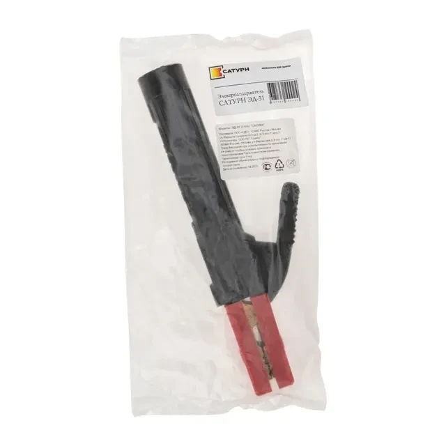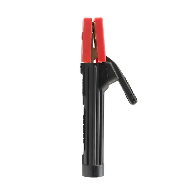 Электрододержатели предназначены для ручной дуговой сварки штучным электродом. • Для удобства использования, на зажимных латунных губках электрододержателя имеется 4 (четыре) проточки для фиксации электрода в различных положениях. • Токоподвод и прижим изготовлены из материалов повышенной электропроводности (латунь ЛС-59-1). • Все изолирующие части (накладка, ручка, кронштейн) изготовлены из конструктивных реактопластов и полиамидов. • Идеально подходят для комплектования профессиональных и бытовых сварочных аппаратов. ТЕХНИЧЕСКИЕ ХАРАКТЕРИСТИКИ: Диаметр электрода: 3,0-6,0 мм Сечение присоединяемого кабеля: 25-35 мм² Сварной ток, А при ПВ (60/35 %): 315/400 Угол закрепления электрода: 45°, 90°, 180° Время замены электрода: 4 секунды Масса, грамм/масса латуни: 320/180