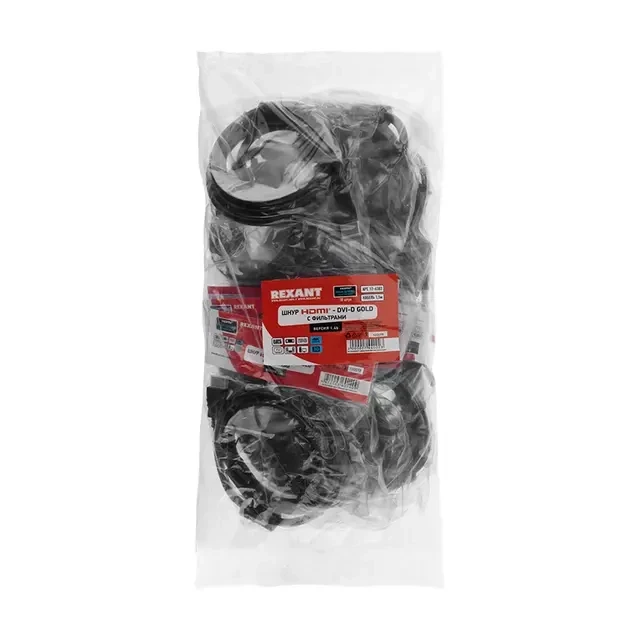Шнур HDMI - DVI-D REXANT предназначен для передачи цифрового видеоизображения высокого разрешения и многоканального аудио сигнала. Используется для совместной работы устройств, имеющих разъемы DVI-D и HDMI: проекторы, телевизоры, компьютеры и ноутбуки, мультимедийные проигрыватели и т.д. С одной стороны устройства расположен штекер разъема HDMI, а с другой – штекер разъема DVI. Наличие ферритовых фильтров способствует подавлению помех и обеспечивает воспроизведение абсолютно точного оригинального сигнала. Для производства жил используется только первичная, технически чистая медь (99%). На контакты разъемов нанесен слой золота по технологии вакуумного напыления, что обеспечивает повышение качественных показателей изображения и звука, а также отсутствие помех при передаче сигналов. Штекеры выполнены из легкого и прочного пластика. Длина шнура составляет 1,5 м. Поставляется в ПВХ упаковке.