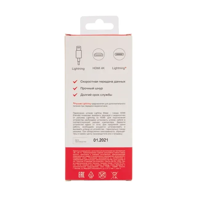 Переходник штекер Lightning (Male) - гнездо HDMI (Female) REXANT позволяет выводить звуковой и видеосигнал от разъема Lightning на HDMI. Благодаря высокому качеству материалов и производства, переходник REXANT прослужит гораздо дольше, чем обычный.
