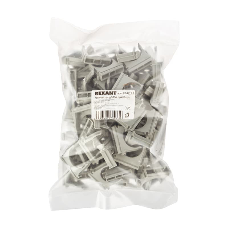 Крепеж-клипса для труб ?32мм, серая (100 шт/уп) REXANT