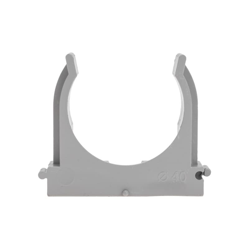 Крепеж-клипса применяется для крепления гофрированных и гладких труб к различным поверхностям. Имеет технологическое отверстие для саморезов/дюбелей. Оптимальная форма клипсы с грамотно расположенными ребрами жесткости обеспечивают надежный захват трубы и достаточную жесткость удержания в течении длительного времени. Характеристики: Диаметр: 40 мм Цвет: серый Материал: полистирол