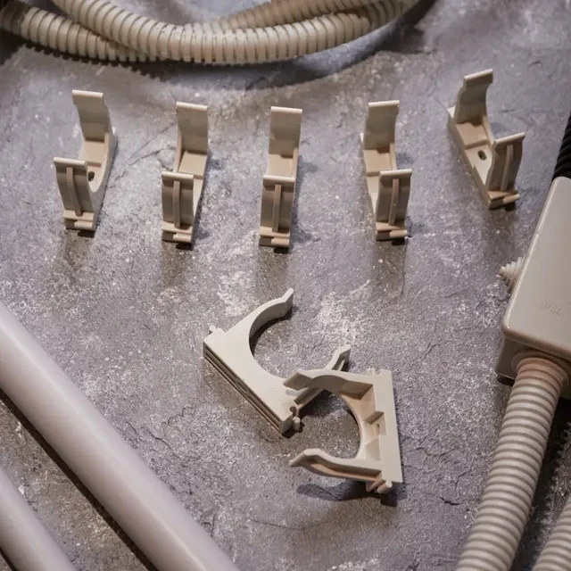 Крепеж-клипса для монтажного пистолета предназначен для крепления пластиковых труб к стене, потолку или полу. Выдерживает повышенные механические нагрузки, возникающие при монтаже с использованием пневмопистолета. Изготовлен из качественных материалов по современным технологиям пластикового литья. Изделие оснащено фиксаторами типа "шип-паз": при установке возможно соединять крепежи-клипсы различных диаметров. Для установки элемента предусмотрено технологическое отверстие под дюбель или саморез, а также уменьшенное отверстие под гвоздь по бетону. Широкие лапки изделия обеспечивают надежную фиксацию труб без возникновения замятий. Благодаря качественному пластику и прочным ребрам жесткости крепеж-клипса не ломается и не ослабляется под воздействием низких и высоких температур.