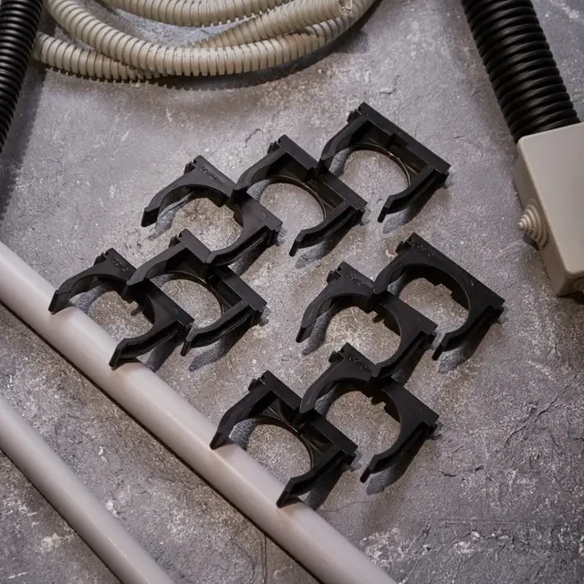 Крепеж-клипса для монтажного пистолета предназначен для крепления пластиковых труб к стене, потолку или полу. Выдерживает повышенные механические нагрузки, возникающие при монтаже с использованием пневмопистолета. Изготовлен из качественных материалов по современным технологиям пластикового литья. Изделие оснащено фиксаторами типа "шип-паз": при установке возможно соединять крепежи-клипсы различных диаметров. Для установки элемента предусмотрено технологическое отверстие под дюбель или саморез, а также уменьшенное отверстие под гвоздь по бетону. Широкие лапки изделия обеспечивают надежную фиксацию труб без возникновения замятий. Благодаря качественному пластику и прочным ребрам жесткости крепеж-клипса не ломается и не ослабляется под воздействием низких и высоких температур.