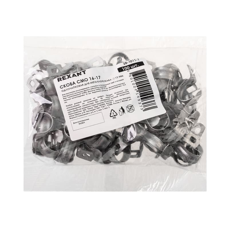 Скоба СМО 16-17 однолапковая для металлорукава ? 12 мм (100 шт/уп) REXANT