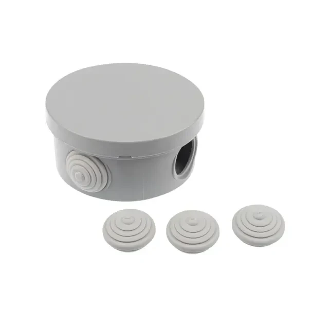 Распаячная коробка предназначена для защиты кабельных соединений от пыли влаги и механических повреждений. Предназначена для крепления на стены, потолки, лотки. Укомплектована вводными сальниками. Размер: 85х40 мм Степень защиты: IP54 Цвет: Серый Количество вводов: 4 Материал: Полипропилен