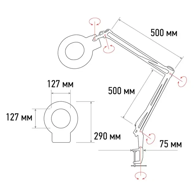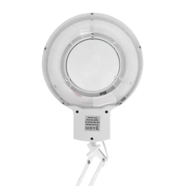 Лупа на струбцине круглой формы с подсветкой REXANT. Цвет изделия – белый. Оптическая сила линзы – 8 диоптрий, что обеспечивает увеличение в 3 раза. Широко применяется в быту и различных профессиональных сферах. Используется косметологами, татуировщиками, ювелирами, часовщиками, врачами и т.д. Популярна в любой области, где требуется визуальное увеличение предметов для более детального рассмотрения. Конструктивные преимущества: стеклянная линза, бестеневая всесторонняя подсветка, удобный пантографический механизм, рабочий радиус регулировки 100 см, струбцинное крепление, экономичное энергопотребление, встроенный электронный блок управления. Размер линзы: 127мм. Цвет корпуса: белый.