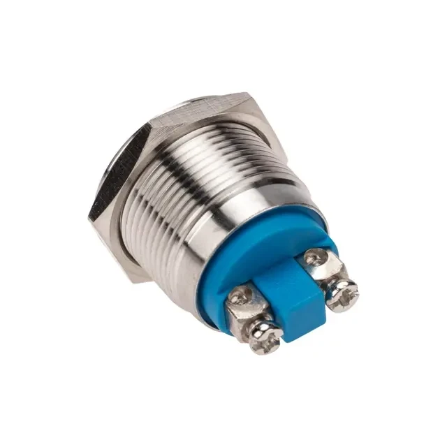 Кнопка антивандальная Ø19 Б/Фикс (2с) OFF-(ON) плоская предназначена для коммутации электрических цепей переменного тока напряжением до 250В путем включения-выключения питающего провода. Такие кнопки применяются в местах, где существует большой риск их повреждения (на различных производственных линиях, в лифтовых кабинах, около входной двери и т.д.). Главными отличительными особенностями антивандальной кнопки являются металлическое исполнение и неуязвимость контактной группы, что обеспечит ей долговечное функционирование. Изделие состоит из двух основных частей - лицевой части (головки) и контактной, и имеет пружинный возвратный механизм. Монтаж осуществляется без применения винтов на плоских панелях толщиной от 0.5мм до 10мм. Подключение проводов осуществляется с помощью пайки или клемм. Основные характеристики: Номинальное напряжение и ток: 3A/36V(DC) 3A/250V(AC); Тип переключения: OFF-(ON); Количество контактных групп: 1; Количество контактов в контактной группе: 2; Фиксация положений: отсутствует; Индикатор коммутационных положений: отсутствует; Установочный диаметр: 19мм; Рабочая температура: от -25℃ до +85℃; Степень защиты (IP): IP65; Ресурс: 10 000 циклов. Преимуществами использования данного изделия является надежность, быстрота и удобство монтажа.