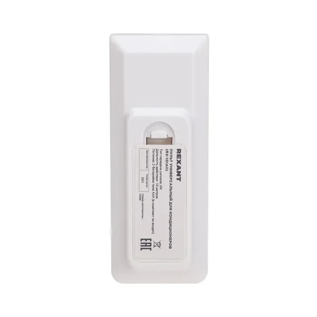 Универсальный пульт для кондиционеров RX-101AII REXANT подходит к более 4000 моделей кондиционеров различных кондиционеров. Обладает широким функционалом и оснащен фонариком. Пульт удобен и прост в настройке. Совместим со следующими моделями: GREE, CARRLE, MIDEA, TOSHIBA, LANBO, CHANGHONG, FRESTECH, CHIGO, MACQUAY, PANASONIC, HUIFENG, HAIER, NANF, MITSUBISHI, DAYU, GALANZ, SAST, KELONG, HUABAO, SHENGFENG AUX, YAIR, SHARP, SHENGBAO, WANBO, DAIKIN, POLKA, HISENSE, TIANYUAN, FUSHITONG, TOBO, HUALING, FEILU, LG, XIAOYA, HITACHI, DEER, TCL, LIANGYU, SANYO, LITTLE SWAN, WHIRPOOL, SUOWA ROWA, LANGGE, ELECTROLUX, CROWN, YORK, ZHONGLI, AUOMA, TALANDI, CHUNLAN, WUFFENG XINKE, SAMSUNG и др. Питание устройства осуществляется от 2 батареек типа ААА (в комплект не входят).