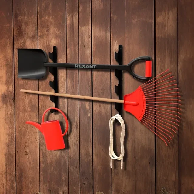 Настенный держатель для хранения садового инвентаря – это функциональный предмет, который помогает правильно организовать пространство и оптимизировать использование каждого сантиметра свободной площади. Обеспечивает порядок и быстрый доступ к инструментам и аксессуарам. Держатель позволяет разместить различные виды инструмента: лопаты, грабли, косы, мотыги, садовые вилы, а также веревки и садовые лейки. Изделие рассчитано на хранение пяти предметов одновременно. Конструкция обеспечивает необходимое отдаление от стены, что позволяет разместить даже громоздкие изделия. В комплект входят все необходимые крепления для монтажа.