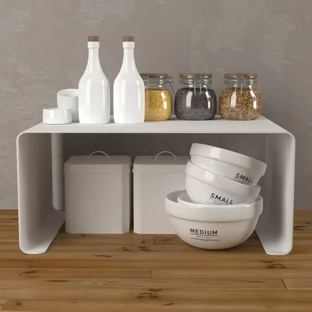 Полка-органайзер для кухонных принадлежностей – это не только функциональное изделие, которое позволяет оптимизировать кухонное пространство, но еще и превосходный элемент декора. Полка-органайзер экономит место, обеспечивает быстрый доступ к вещам и помогает поддерживать порядок на кухне. Изделие выполнено в стиле лофт и предусматривает место для размещения посуды, специй, чайника, тостера и т. д. В комплекте поставляются противоскользящие неопреновые наклейки-протекторы, которые надежно фиксируют подставку на столе.